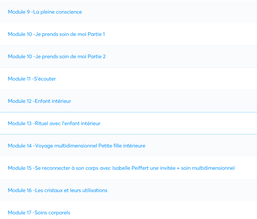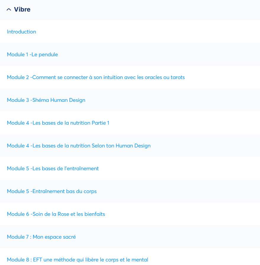 Une progression en 20 modules vibratoires à ton rythme :